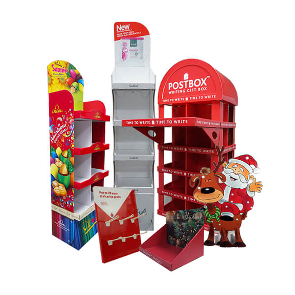 The custom corrugated cardboard displays printed with Christmas related graphics such as Santa or Christmas Tree and any related words will help to create a great Christmas holiday shopping atmosphere for your retail stores or supermarkets than you simply put your products on the plain display shelf.